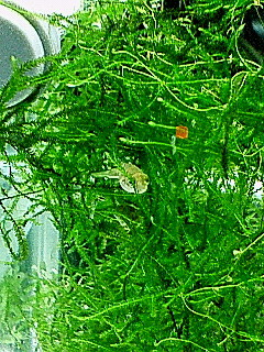 プラスチックケースに移されたアベニーですが、ヒーターがないけど元気です。