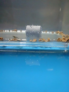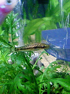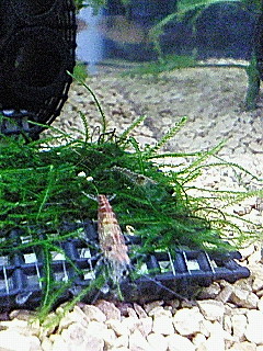 食べられた。。。。と思っていたら、またまた稚魚が誕生していました。 迷ったのですが、産卵BOXに保護しました。 流木やモスマットを動かしていたら、なにやら動くモノが・・・・ よ~~~~く見たら稚エビでした。 この、食いしん坊水槽の中で、1匹だけ生き延びていました。 8月に抱卵したエビから産まれたのかもしれません。 ネットにいれて保護しましたが、 小さすぎて、今、見あたりません。。。。