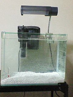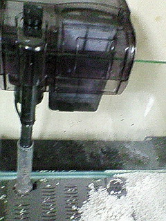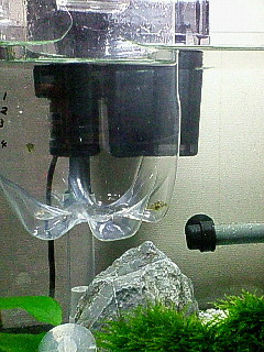 底面式の濾過装置と、外掛け式のフィルターをつなぎました。
